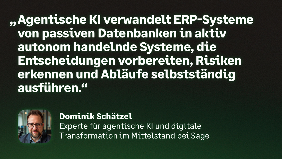 Dominik Schätzel ist Experte für agentische KI und digitale Transformation im Mittelstand bei Sage.